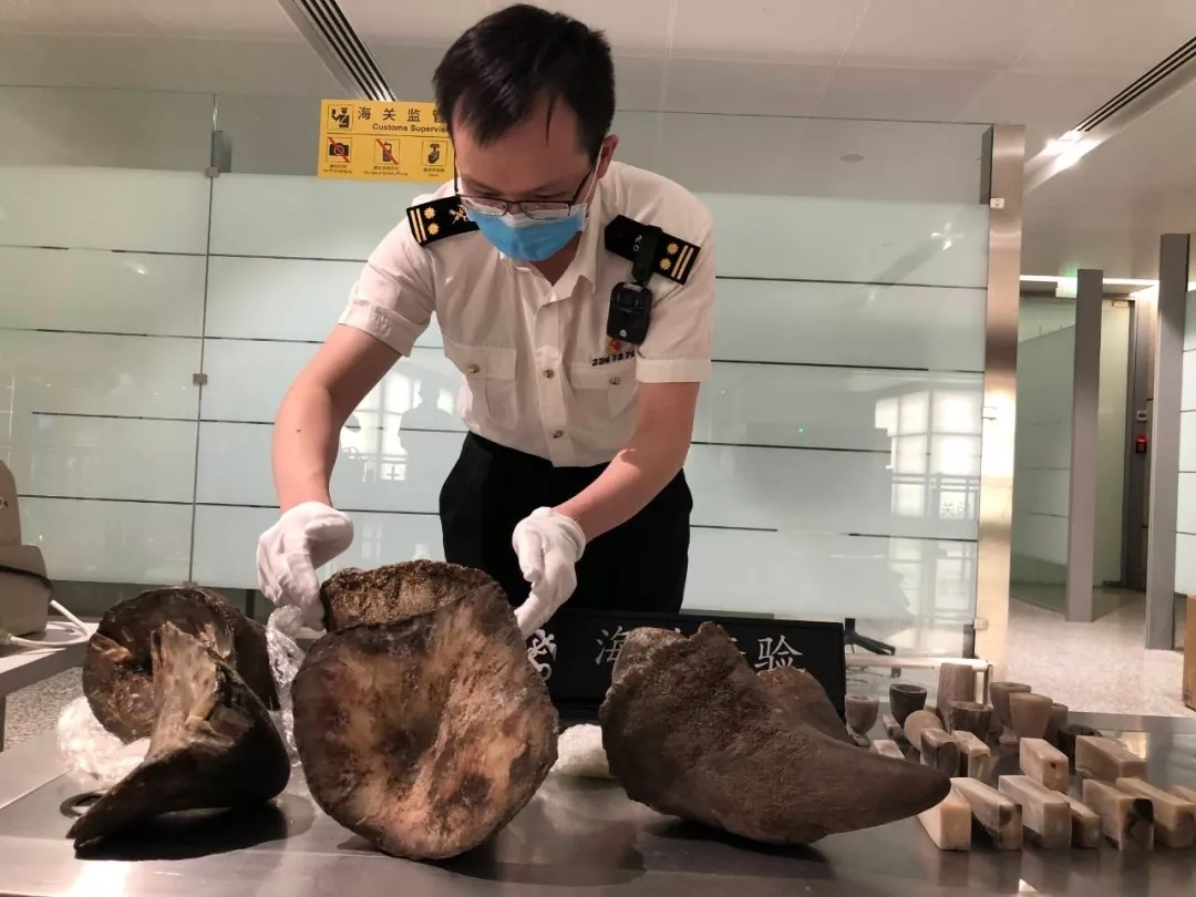 旅客感受到“无感通关”快捷的同时,先期机检也给海关精准监管提供了有利帮助。试点期间,虹桥机场海关查获有史以来最大一起犀牛角走私案件,涉及犀牛角及制品30件、重9.79千克,案值约244.75万元人民币。